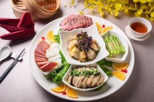 天成佳偶迎賓盤(龍蝦沙拉/烏魚子/蜜桃鴨胸/醬燒腱子肉/蔥油蜇絲)