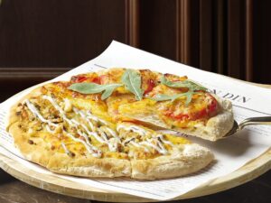 母親節四人分享餐匯聚招牌,包含下酒小菜可任選三道,分別有蔥鹽五味炸皮蛋、麻辣花生米血糕、黑鹽百香脆薯、芥末杏鮑菇、海鹽黃金泡菜、辣味螺肉以及黑糖薑汁番茄七款人氣精選;雙拼風味披薩可任選兩種口味,包含經典瑪格莉特三重奏、蜂蜜松露野菇,以及蔥鹽脆皮鹹豬肉…等多元風味。「吮指炸雞凱薩沙拉」是以香酥炸雞搭配爽脆生菜與濃郁凱薩醬,風味濃郁誘人;「芥末椒鹽酥炸透抽」外脆內嫩的透抽帶有細緻辛香與微微提味的刺激感,搭配特調東泉塔塔醬更添層次;「義式香料紙包烤魚」融合義式香料將魚肉的精華完整鎖住,淡雅的檸檬清香與鮮甜海味完美搭配;「BBQ 爐烤美式豬肋排」炭火烤製的豬肋排鎖住肉汁,搭配特製BBQ醬,散發迷人香氣。