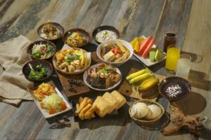 翌日自助式早餐則囊括台灣南北的特色中式早餐,經典魯肉飯除了鹹香的魯肉醬,再搭配魚鬆,呈現出鹹甜相間的迷人滋味,招牌擔仔麵則是麵體Q、湯頭濃,搭配爽脆的豆芽菜更是畫龍點睛。此外以滋滋作響的鐵板,煎出表層赤香脆感的蘿蔔糕、蔥油餅與漢堡肉排,佐上馳名海外的東泉辣醬,是饕客早餐必吃的料理。至於貢丸湯細嫩、富嚼勁口感與靈魂湯頭,更是人氣首選,除了以上美味佳餚外,還可以品嘗到新竹米粉炒、現沖牛肉湯、古早味鹹粥、清粥小菜等多種地方特色的中式早餐開啟元氣滿滿的一天。